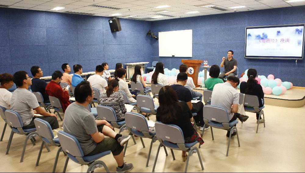 6月4日下午,中心举办的人文素质系列讲座活动第四讲在沙河校区6楼107室开讲,邀请我校经济学院徐华教授为大家解读国学经典《道德经》,讲座由中心主任王健主持,中心各科室的工作人员参加了学习活动。