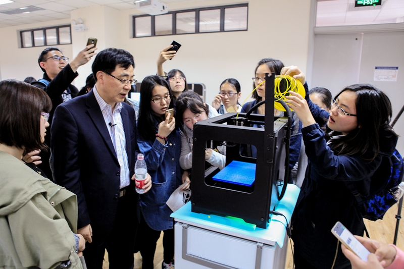 2016年3月31日下午,教学技术服务中心请到了来自美国德雷塞尔大学周功耀教授在沙河校区4号学院楼101多功能实验室举办了题为《3D打印,创艺未来》的讲座。 整场讲座紧凑充实,周教授深入浅出的介绍了FDM打印技术、3D打印的应用及未来愿景、以及4D打印相关内容。参加讲座的同学们十分热情,传看了3D打印成品,观看了3D打印机操作,并在讲座后从技术、应用、对生活的改变等方面积极提问交流。 让我们惊喜的是,我校部分同学对3D打印有着浓厚兴趣,中经管14级孙乾同学自己买了打印机和耗材操作、电商14级盛志璇同学自学了3D技术相关内容、管工14级陆宏等5名同学组建了3D打印主题的大学生创业团队等。
