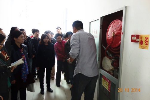 此次消防演练,由保卫处宋一民老师负责讲解。演练内容主要分为灭火器、楼内报警、消火栓、疏散四个环节。灭火器环节,分为灭火器知识讲解(如灭火器的压力范围、分类等)和实际操练。操练环节,大家纷纷积极上手实际操作,消除了以往对灭火器使用的误区;楼内报警环节,大家了解到了电话报警、直接报警和消防设备报警这三种报警方式;消火栓环节,使大家明确了自救软管,这个一般情况下实用性更强的工具;疏散环节中,大家对于疏散的标志、姿态、禁忌有了更多的了解。